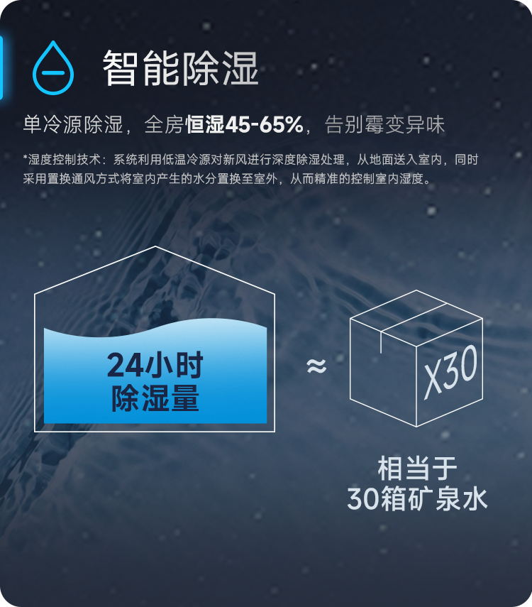 溫濕分控技術利用低溫冷源對新風進行深度除濕處理,從地面送入室內,同時采用24小時不間斷置換通風的方式將室內產生的水分置換至室外,從而精準的控制室內濕度。避免過度潮濕而滋生的細菌、霉菌等。
